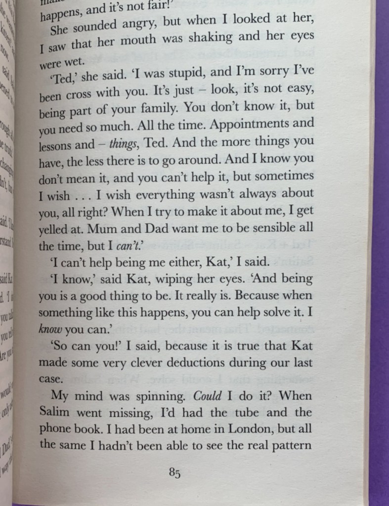 What really caught my attention about both of these books is the fact that Ted is a main character and both authors do not shy away from talking about how his autism affects him (they keep it realistic but they do not go on about negative aspects instead they show copying mechanisms and positives). I did however find that in this story the autism was even more of a focus than the first, the writing did not seem as natural as the first. In the first story I felt like the author wove it into the story effortlessly whereas in this story I felt like it was a bit forced. But having said that I still really appreciate the fact that there is a second story out there that deals with this incredible character and his family. It is still a positive example of how a kid is coping with his autistic traits. It is honest and does not shy away from things like – when Ted gets very overwhelmed he does need to hit something or the fact that he hates change and spends his school holiday in New York wearing his school uniform because it gives him comfort to have something constant. There is also a small moment where is sister Kat confesses that it is hard being in Ted’s family because everything is about him coping and she often feels like she gets neglected as a result. Something which rang very true to me. There are so many moments throughout this story where I was nodding along going, yes that is a totally realistic reaction from an autistic kid, yes I understand why that character is doing that or saying that. When you are reading it you do get the feeling that the author understands autism and is trying very hard to explain it to the readers so that they can understand it better.