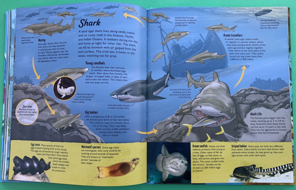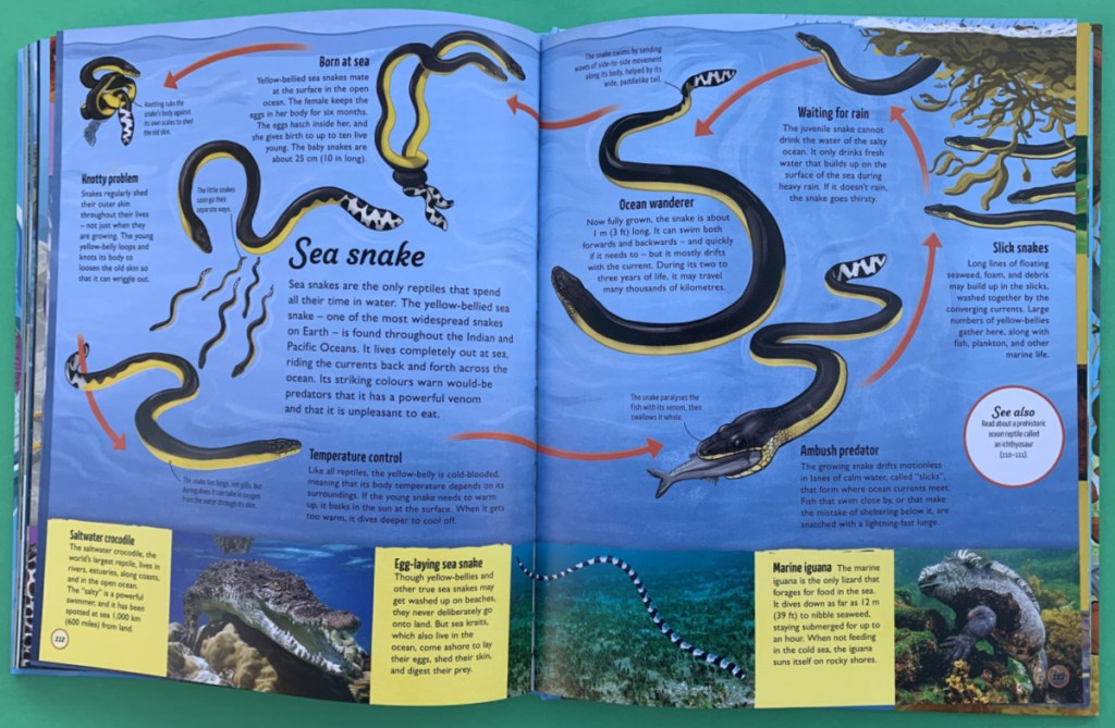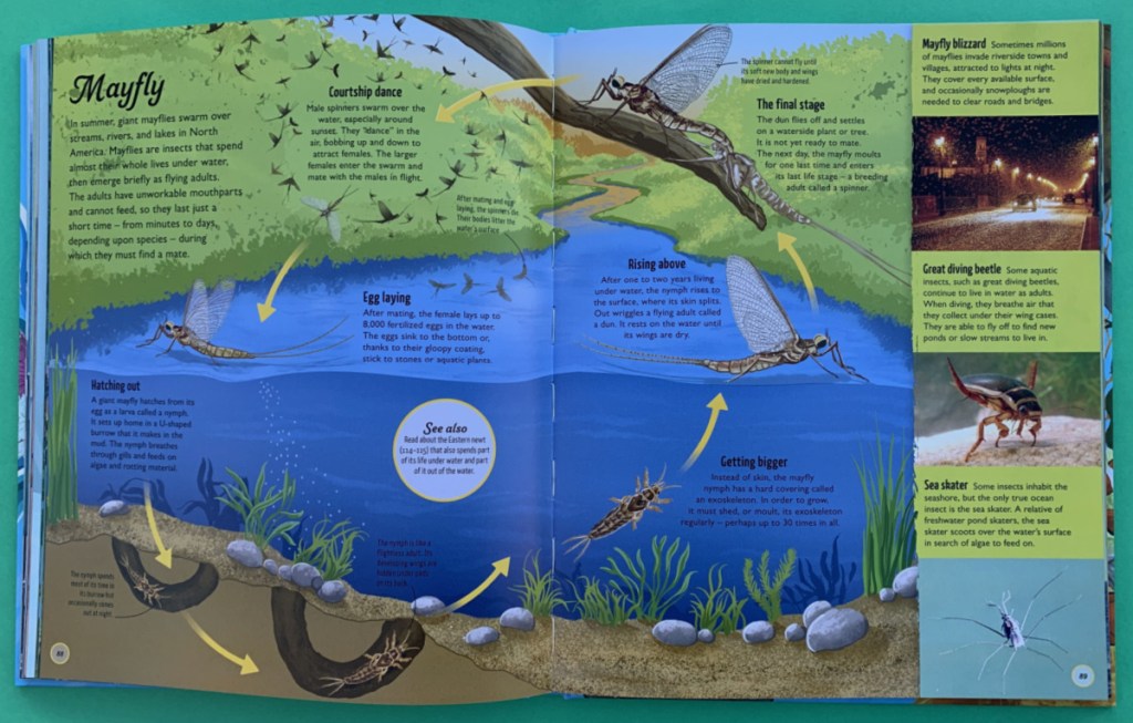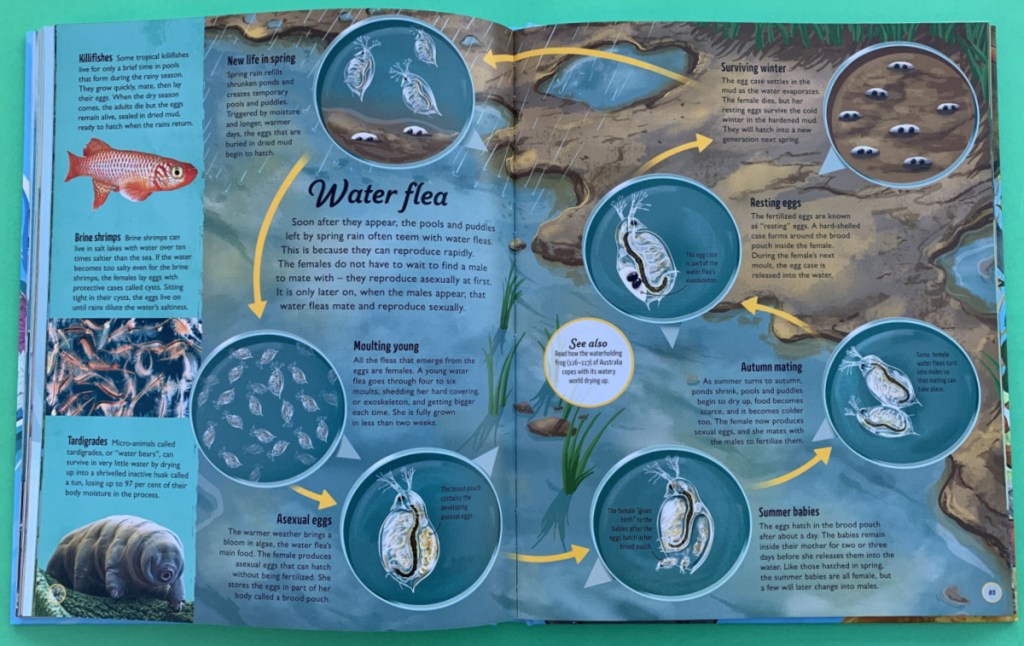 Life in Water is the expected animal life cycles. Now confession when I asked for this book, that is the reason why I wanted it – because I knew my son would enjoying learning about all these life cycles. But I will confess the range of animals that they included here really impressed me. I mean who would have thought of a Periwinkle, a water flea or Tetra. So informative. These pages are so well designed that it is just easy and enjoyable reading them. I love it when the book invites you in and then prevents you from leaving because you just have to turn the page to see what else they could have possibly include.