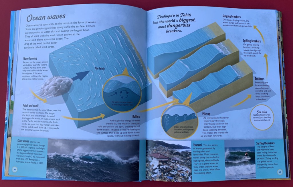 That is a lot. And it is truly fascinating. The first section Water on Earth is amazing. I was expecting things like the river’s journey and cloud formation (which is beautifully illustrated) but it was the pages on things like hot springs, deep-sea vents, volcanic islands and cave formation that really wowed me. I love that they have extended our concept of water cycles in this way and included all of this detail. It is actually a whole section of Geography explained with interesting diagrams and facts. It just makes rivers and land formation that much more interesting. I really do like this entire section and wish we had it when I did my daughter’s Geography (I think looking at some of these pages would be great as a starting point).