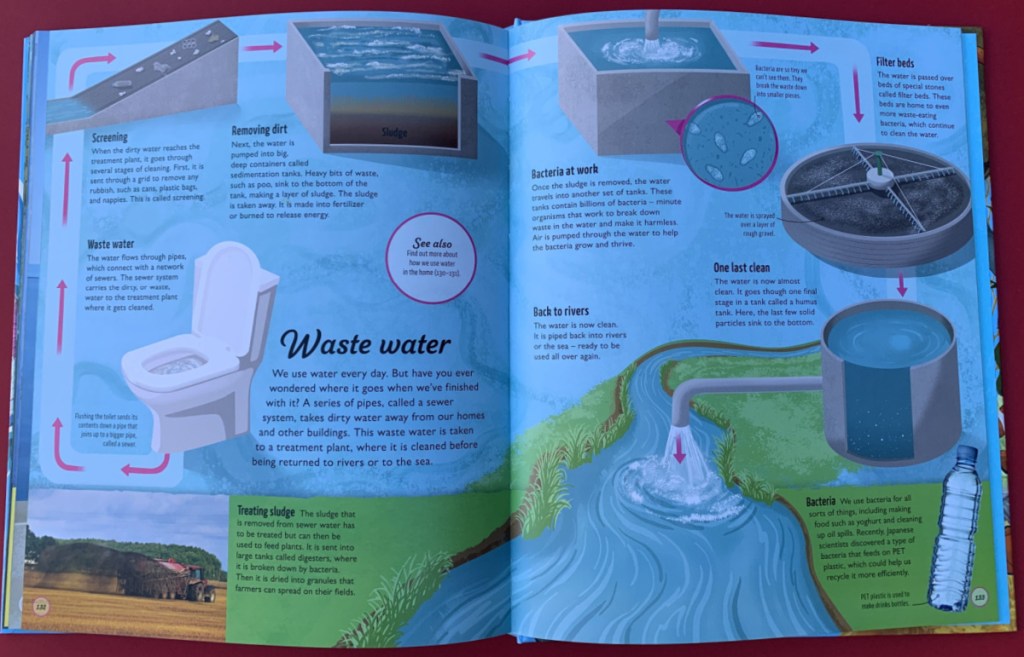 Then the final chapter – Water and humans. Again so informative and it gets the kids thinking about what happens to waste and how hydropower works.