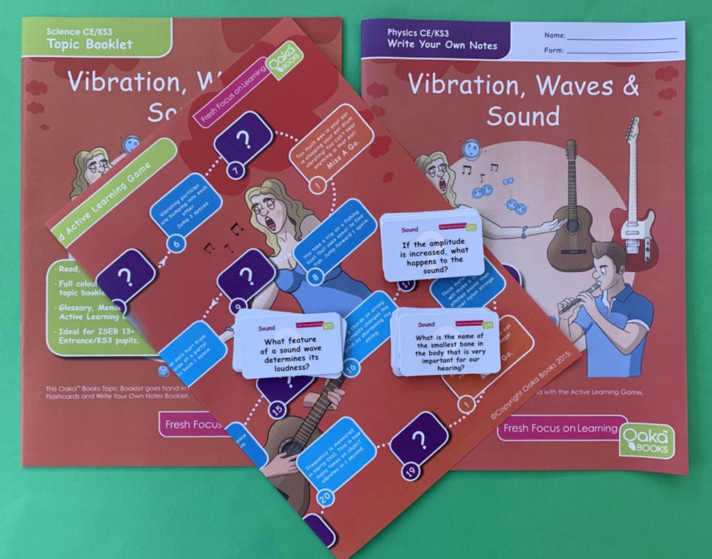 I was doing a quick review of our Science, making sure we had covered everything that we should have for KS3 and also making sure that we have introduced all the topics that my daughter will be covering in more detail in her next two years (Year 10 and Year 11). She has chosen to continue with Biology and Physics so I have been giving those two a bit more attention and the one topic that I felt we needed to revisit was Sound. So when the lovely people at Oaka Books asked if we wanted to look at some of their GCSE content (I of course said YES), I asked if we could also get a Sound pack to use and they very kindly agreed to send us one. (I am going to write about their GCSE content soon).