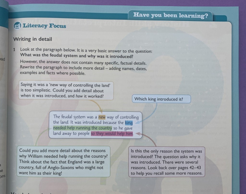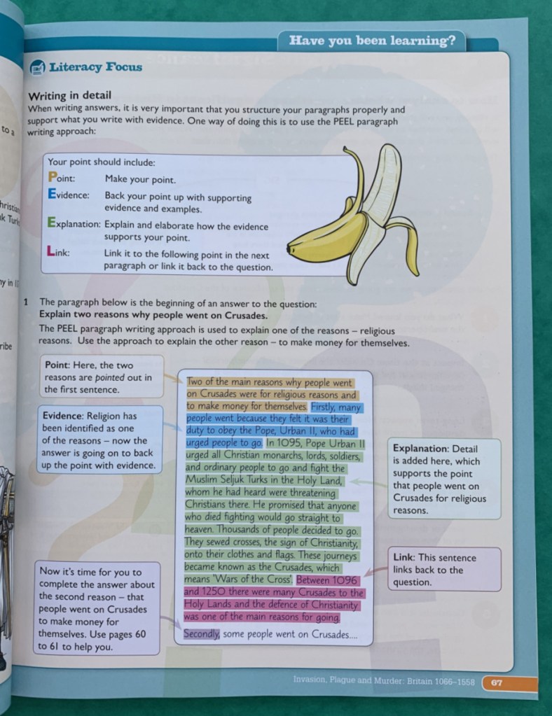 Then at the end of each chapter you get a Quick Knowledge Quiz (again testing you understand what you have read throughout the chapter) and Literacy Focus questions (things like note taking, PEEL paragraphs or writing in detail).