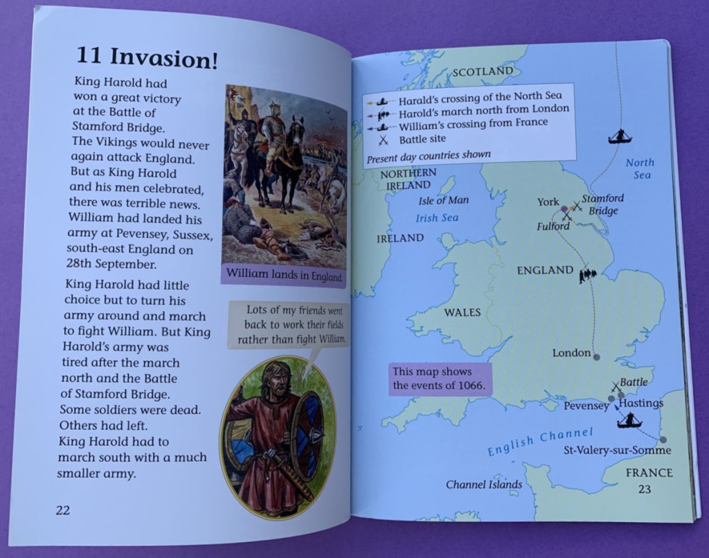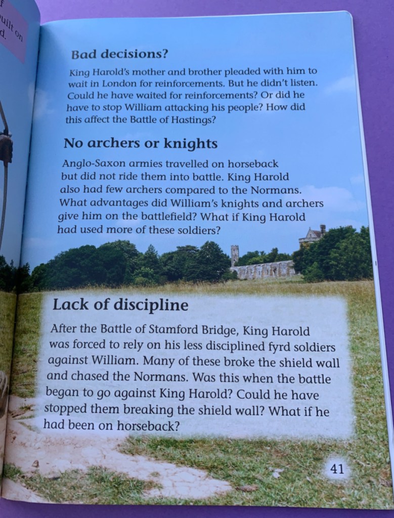 And then they take it a step further and actually get the kids to think about the events. In The Battle of Hastings they challenge the kids to think about what went wrong, what could King Harold have done better that could have changed the outcome.