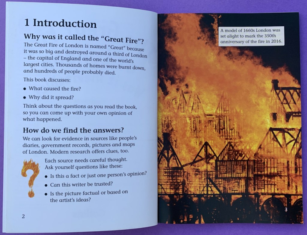 And with The Great Fire of London they start by explaining to the kids that they need to think about sources and how trustworthy the sources are (which is something that the kids will never to develop in their Secondary History).