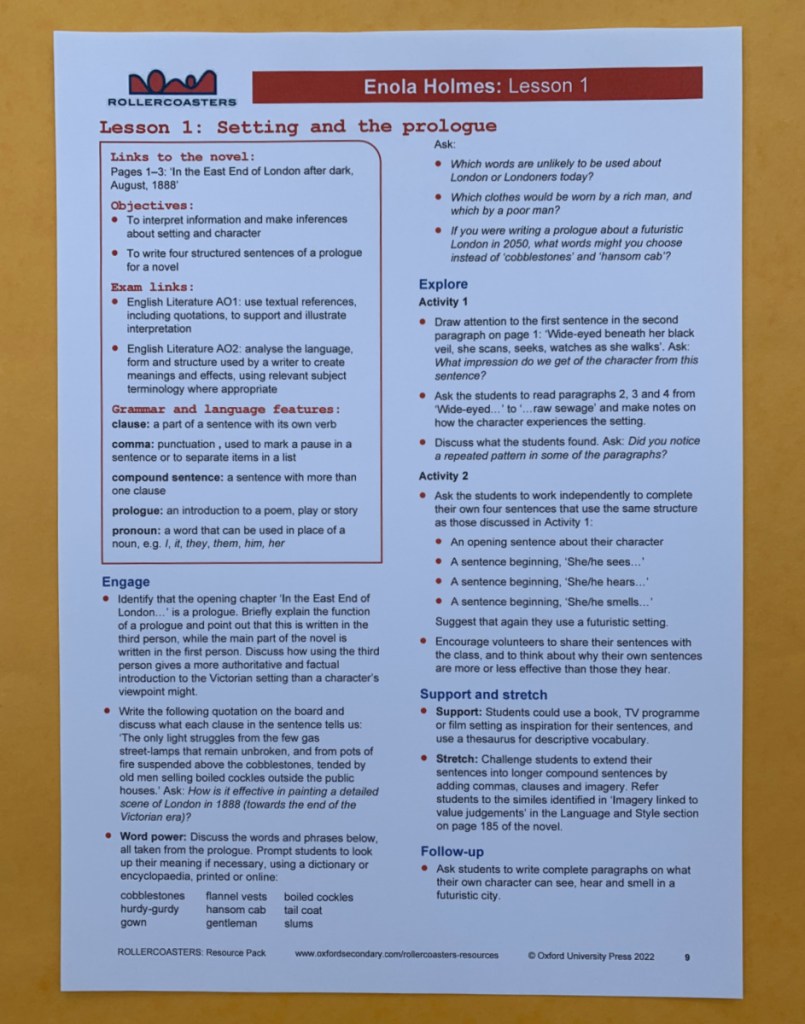 Honestly if we had discovered this book earlier we would have worked through the pack as part of my daughter’s Year 9 English Literature activities but she is starting her IGCSE English Literature activities so for now I will leave it until my son is in Year 8 or Year 9. But for anyone else home educating their kids it is worth having a look at the Rollercoaster packs on the Oxford University Press site. They always include lesson suggestions and a wide range of resources and they are ALL free to download.