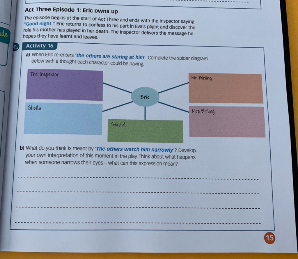 We got our Workbook directly from Oxford University Press – here’s their link – An Inspector Calls Workbook.