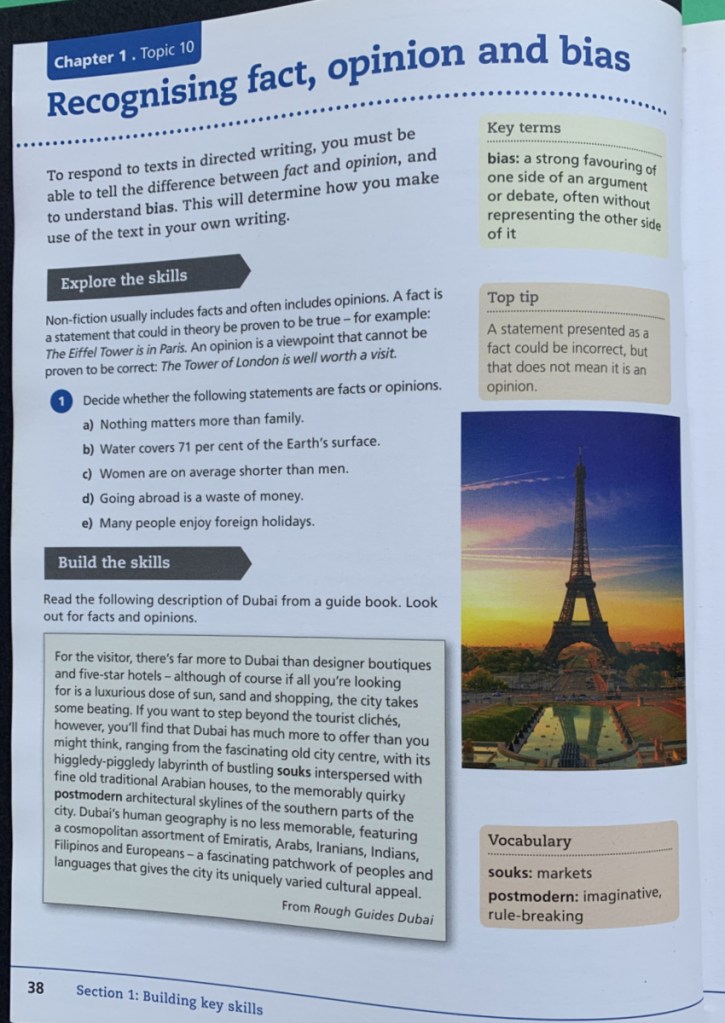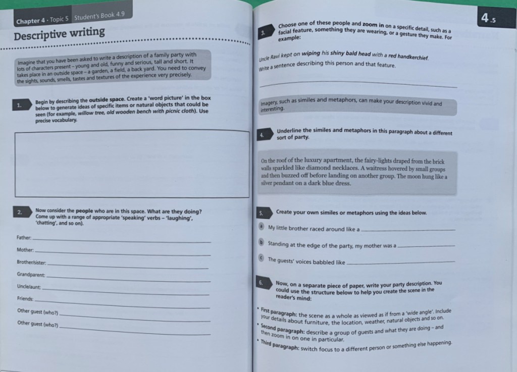 One of the IGCSE’s (the International version of GCSE’s) that my daughter is planning on writing is English Language. And I thought that finding some sort of course work (ie activities to work through before we focus on past exam papers) would be easy to find, because it is English Language, but actually this has been one of the subjects that I have really struggled with. Right from the beginning I knew what I wanted – a student book which discusses the different topics that we need to work on (ie how to structure a diary entry or synthesising information) and then a linked workbook which had practice activities on the student book. I wanted the student book and the workbook to be linked, so that I could easily say go to the activities in the workbook and complete them, and my daughter would be able to easily find them. I did not want her to have to rely on me searching and finding everything on the internet and then waiting for me while I figure out what we needed to do next. I had already spent quite a bit of time looking at English Language past papers so I knew what we were working towards and what sort of activities I was expecting to see.