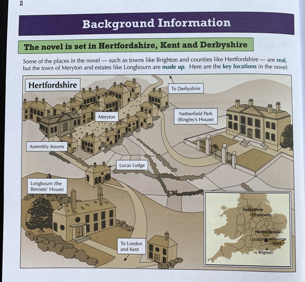 Introduction. I loved this quick but brilliant 5 page introduction. There is a quick background on Jane Austen, a map (we both loved this), a lovely one page summary of the main characters and then a concise two page summary of the entire book. We both thought everything about this introduction section was just spot on, really well worded and wrapped the entire book up beautifully.