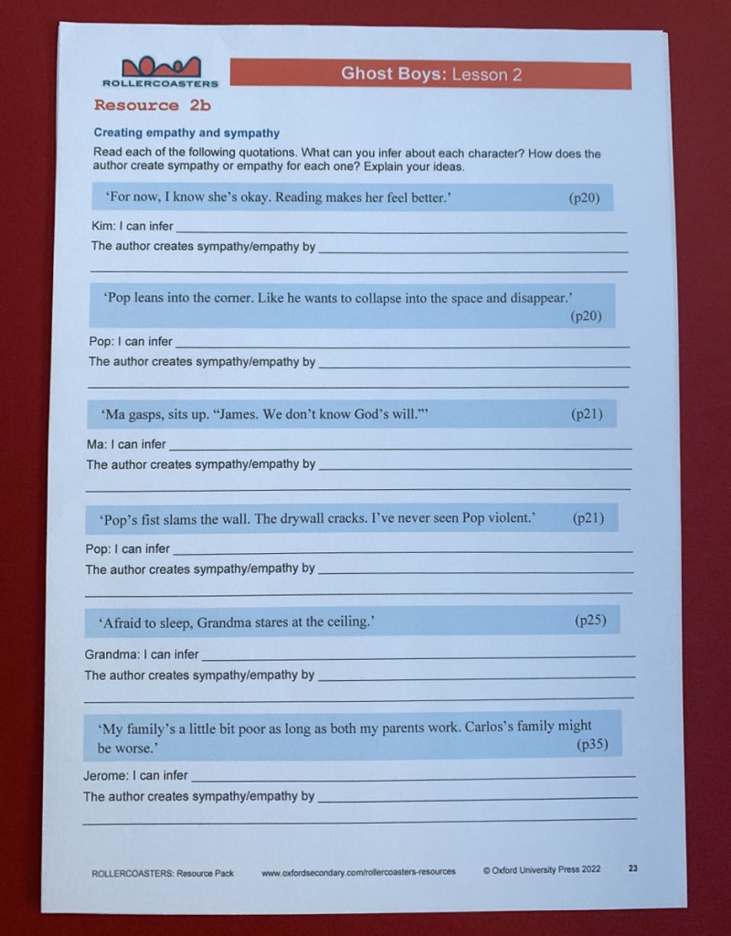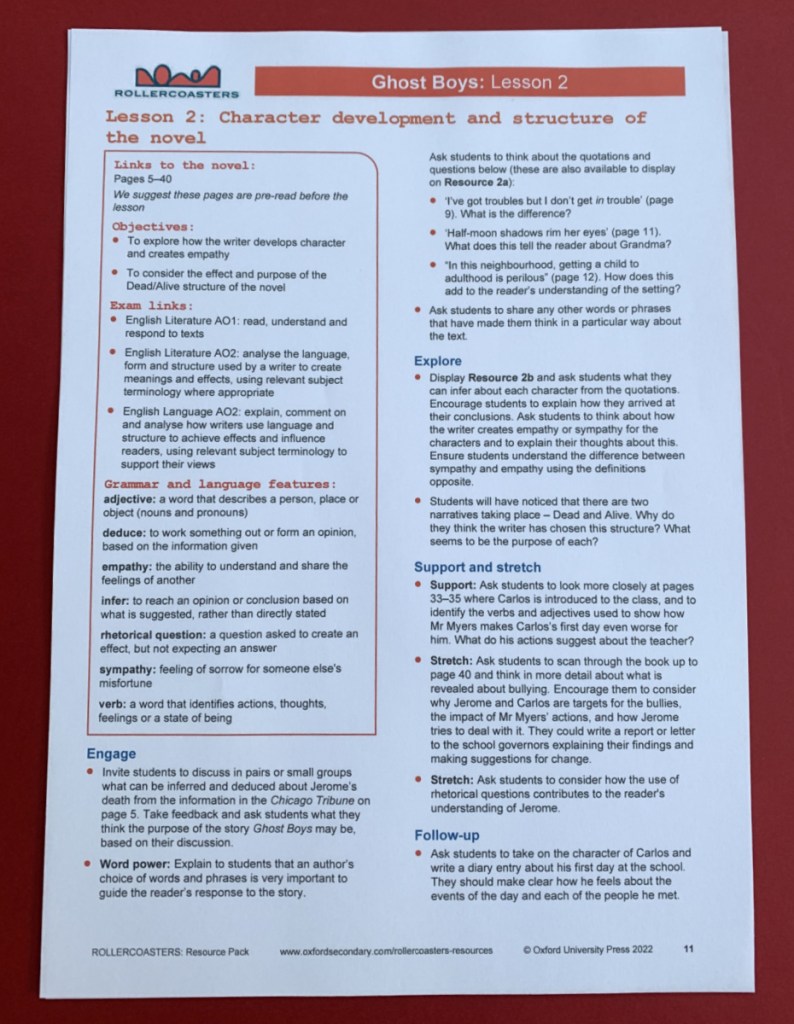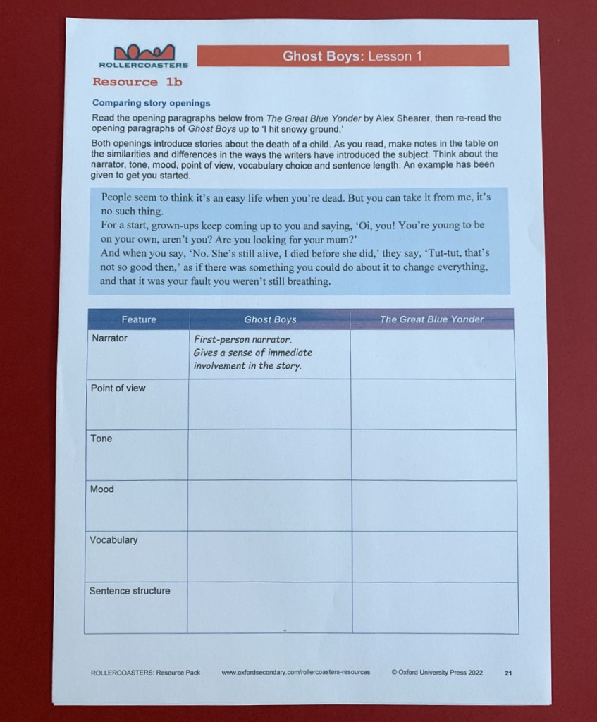 Okay now this book like all the Rollercoaster books comes with a free to download Resource Guide. I must confess with this book we skipped the suggested lessons and just picked out a few of the activities. The main reason for that was I was not expecting my son to tear through the book, the way he did and after having our long discussion about the book I actually felt like he had already focused on the important parts. (Just to clarify – on the OUP website if you go to the page about the book there is a button on the right hand side which says -Rollercoaster Resource Pack – click on that and you will get the free resource pack. And it is the same with all of the Rollercoaster books – just go to the page that talks about the book and you will find a link to that books resource pack)
