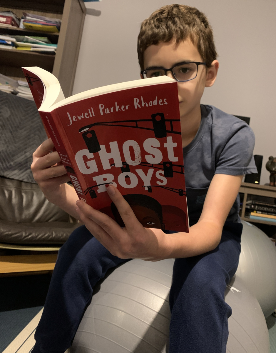 When I was recently sent a copy of Ghost Boys for a review I did not know what to expect. But before I could even start reading it my eleven-year old son spotted it, started reading it and then quickly finished it within three days (yes, he likes sitting on a gym ball when he reads).