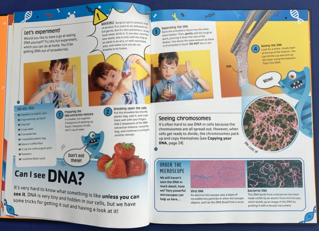 Admin – I spotted this DNA book, thought it looked like a brilliant educational book and I approach DK and asked if they would be interested is us writing a review.
