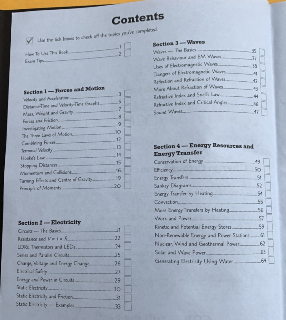But we are book people so we do have a few physics books that we are using along with the Theater of Science lessons and I thought it was time I started to write a few posts about those Physics books. The first one is our CGP Edexcel International Physics workbook. We have the Biology version of this workbook and I have found it very useful so when I started looking around for a Physics workbook I just thought if I would stick with the workbook series that has been working for our Biology (really a case of if it works why change it).