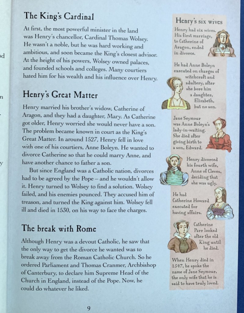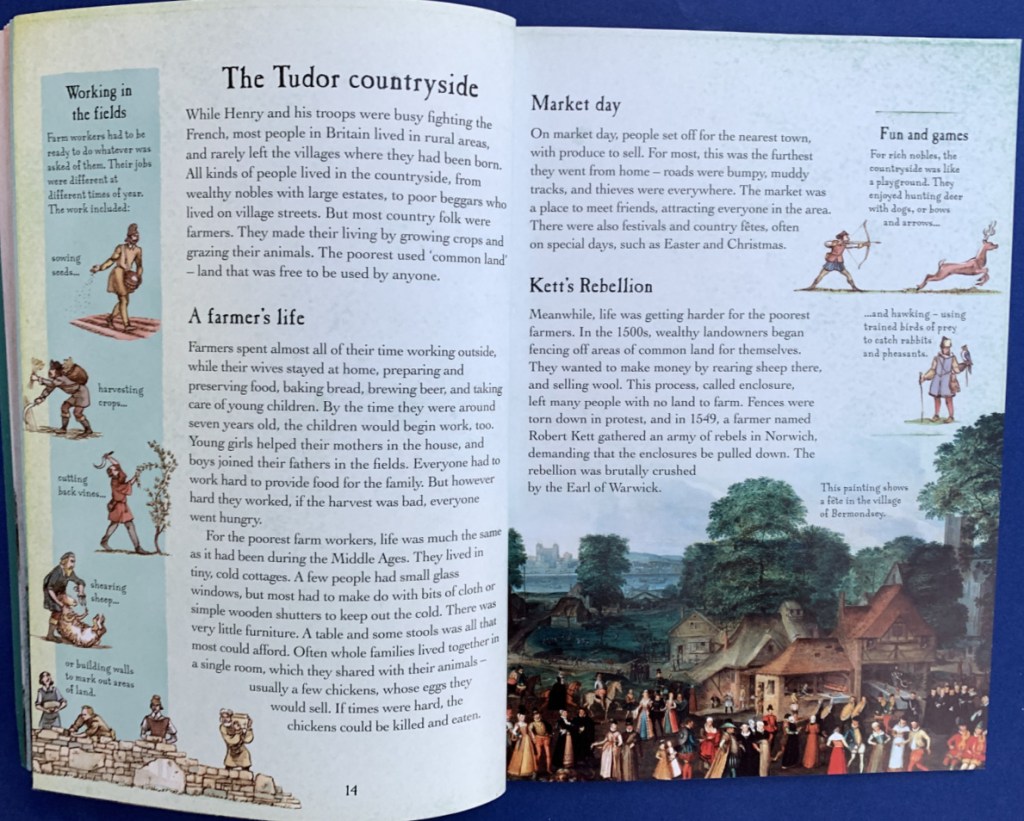 Okay so format wise. The pages are well formatted (what we all come to expect from Usborne) – short paragraphs, lots of interesting pictures and diagrams and some fun boxes along the side of the pages to highlight certain facts. When my kids were younger I did read sections out of the book to them but we really got the most out of this book when my kids could sit and read it themselves. In fact we used it quite a lot when they had mini-projects to do for History (eg when my daughter was creating timelines and family trees or when we were doing a project on “what came after the Tudors”).