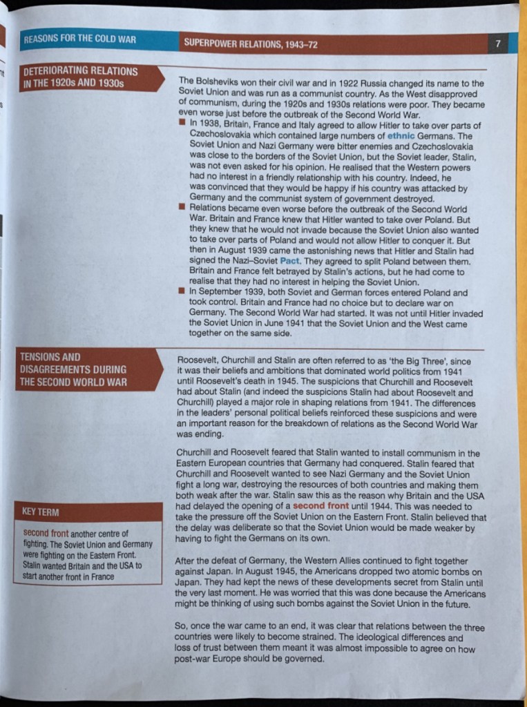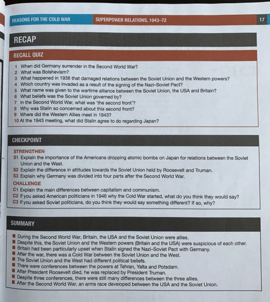 This book contains all the information that your kiddo needs to know for the Superpower History Topic. Everything is in here. Now this is IGCSE level so there is quite a bit of information and there is no getting around the fact that some of the pages are going to just be a bit text heavy (It is History and at this level you have to accept that there is quite a bit to learn). However I still think they manage to format the pages of text nicely and break it into smaller chunks (I always think tackling a topic in smaller chunks is much easier).