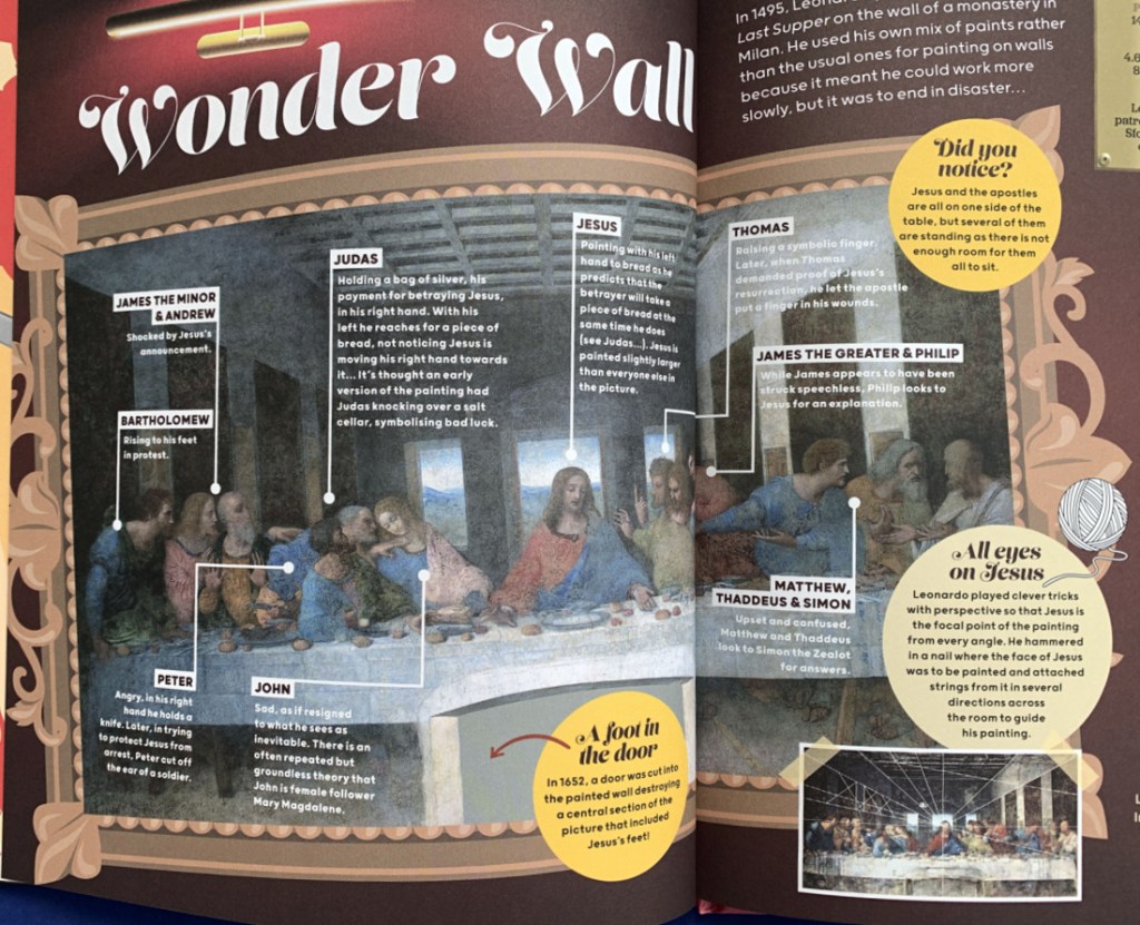 And yes the pages on the Mona Lisa and the Last Supper were expected but even so they were filled with interesting facts.