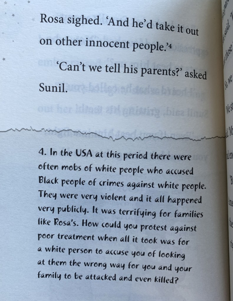 In both of these books they traveled back to some very interesting times and places. My favourite was when Sunil meet the young child who grew up to become Genghis Khan and he witnessed how vastly different Genghis Khan’s childhood was. Sunil also met Rosa Parks, and got to experience the British Civil war, Roman Invasion and the Witch Trials.
