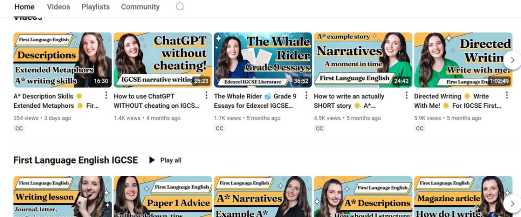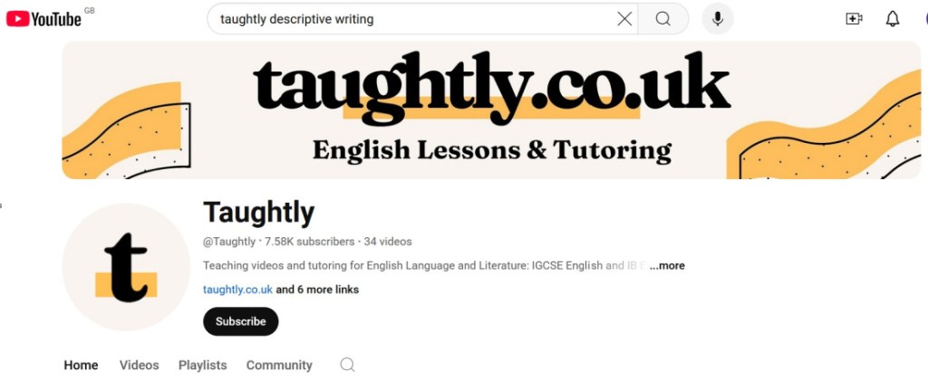 We started by watching Taughtly on YouTube, I think the first time we turned to her was for her video on how to tackle the descriptive writing question for paper 2. I am so glad we found her because my daughter is actually a really good writer but she needed to understand what the examiners were after. And she needed those vital pointers on how to structure her piece so that she could complete it within he time frame.