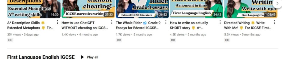 We started by watching Taughtly on YouTube, I think the first time we turned to her was for her video on how to tackle the descriptive writing question for paper 2. I am so glad we found her because my daughter is actually a really good writer but she needed to understand what the examiners were after. And she needed those vital pointers on how to structure her piece so that she could complete it within he time frame.