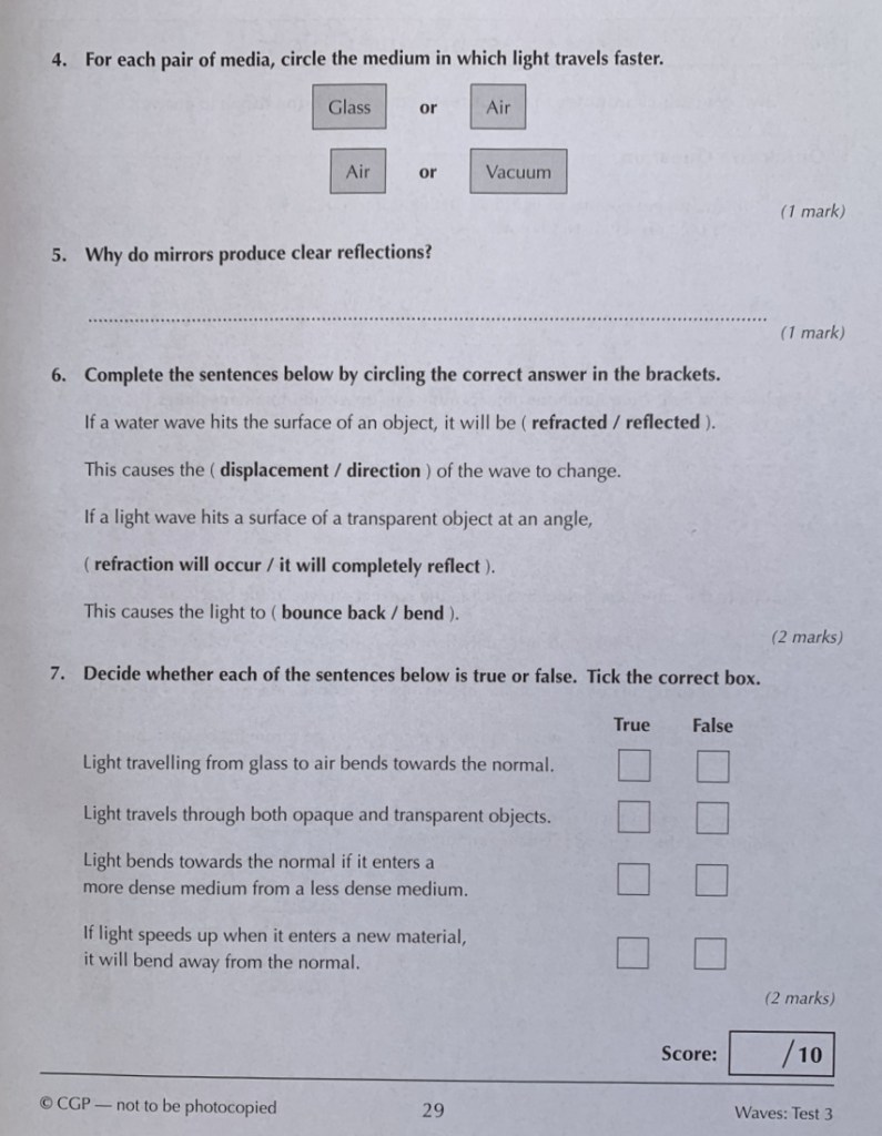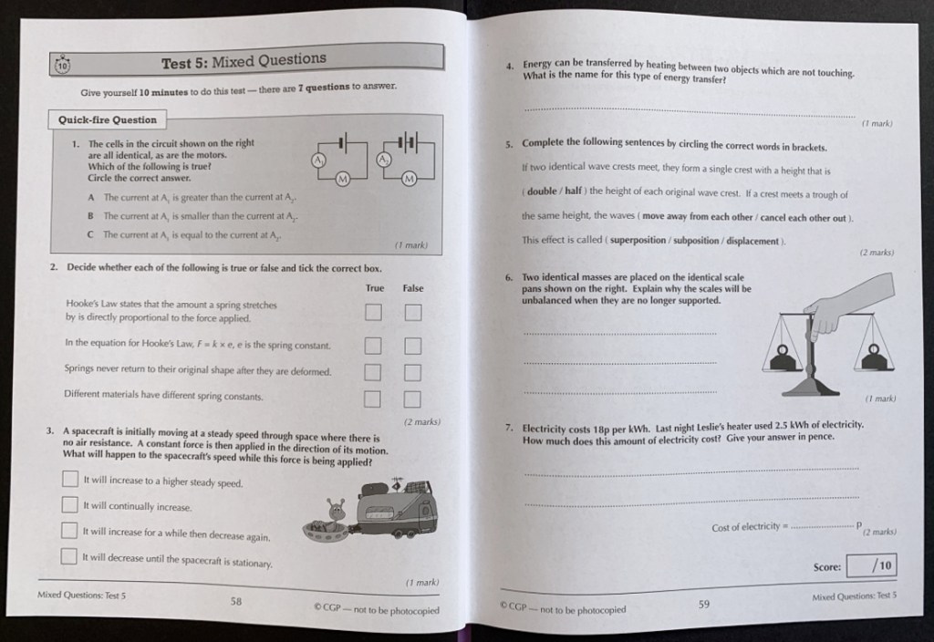 For those of you interested this is the Amazon link – CGP Key Stage Three 10-Minute Physics Test book.