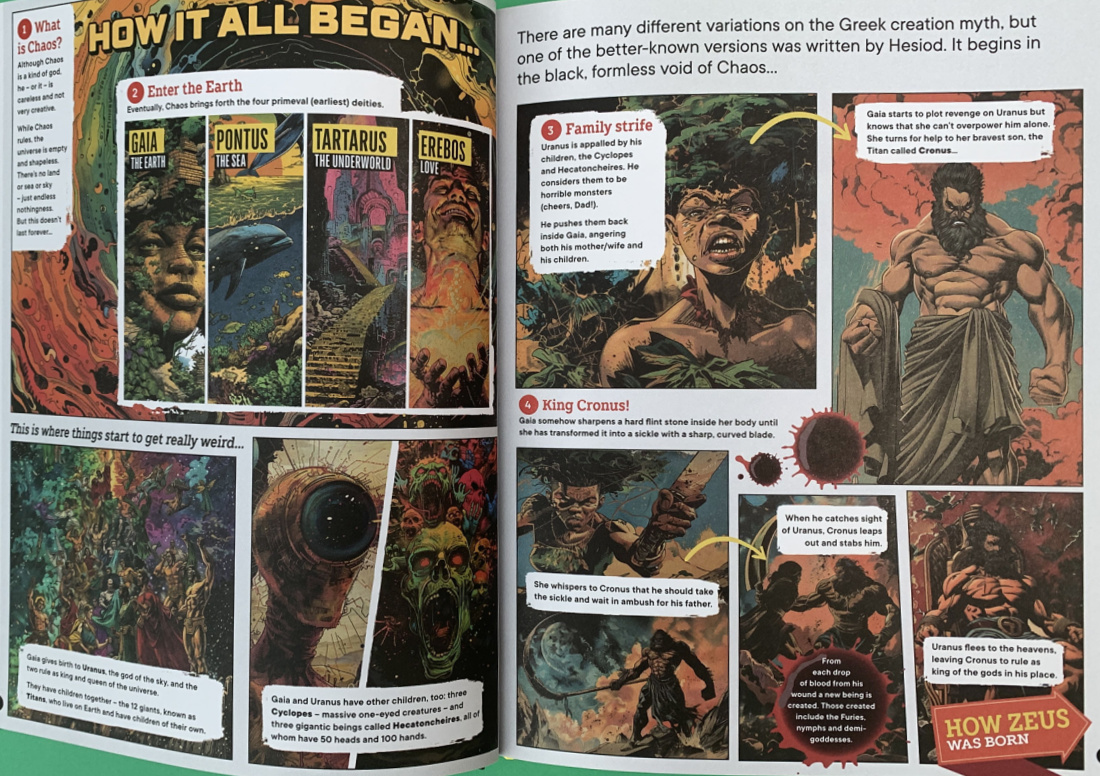 Greek Myths are a popular area of interest so when I saw that there was a Greek Myths book in the Factology series I was interested to see what it was like. And I LOVED it. Even though I have read a few other Greek Mythology books before I found this one set out and explained the stories and how everyone was linked in a very easy to digest manner. While I was reading it I had quite a few “light bulb” moments.