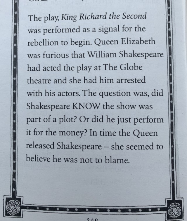 The fourth story touches on Shakespeare and how one of his plays was used as a signal to try and start a rebellion. This is a story which I had never heard of before so I found it fascinating, I also enjoyed the way they depicted Queen Elizabeth.