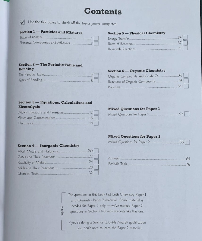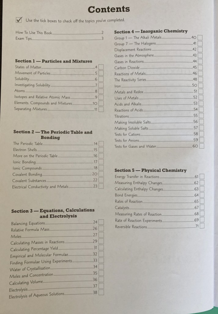 Content wise they do cover the same topics but the targeted workbook is a lot more specific in which parts of the topics it has questions on. If you look at the contents page and just look at Section 1 – Particle and mixtures, the targeted workbook only has questions for State of Matter and Elements, Compounds and Mixtures (6 pages of questions)